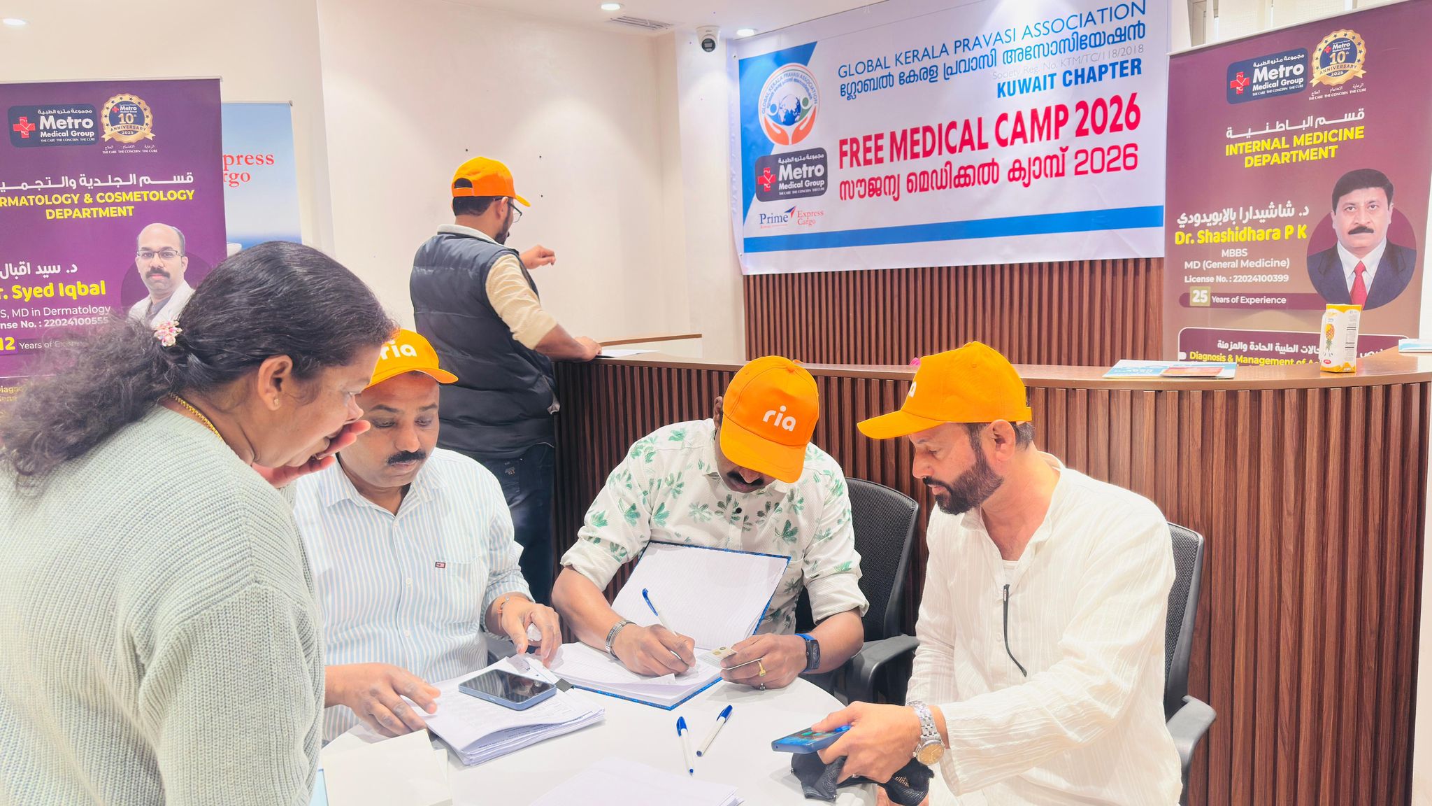 Alongside the medical services, NORKA–Pravasi Welfare membership and GKPA membership registrations were conducted. Volunteers from various sectors, including Mujeeb K.T., Amanullah, Sabitha, Bindu Nair, Abdulla Kadavath, Rafeeq Olavara, Shareefa Hawally, Saleem Koduvalli, Arshitha, Lalitha, Saleem Kochi, Sreelatha, Jiby Thamarassery, Shajahan Malappuram, Pradeep Salmiya, Sajina Kollam, Menish Vas, Raheem Arikkandi, Rathish Rajan, volunteered & coordinated the event.