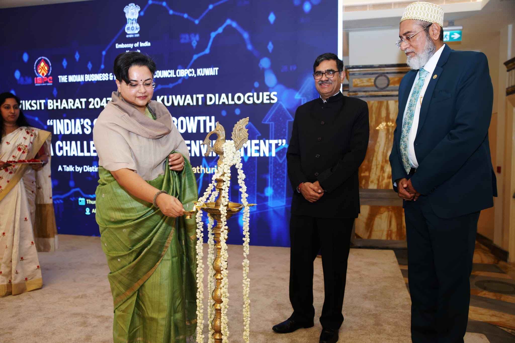 1. The Embassy of India in Kuwait launched the “Viksit Bharat 2047: India-Kuwait Dialogues” today at a special event held at Hotel St Regis, Kuwait. This new initiative of the Embassy will be a series of talks that will provide a platform to present India, or Bharat, and its various aspects to Kuwait, fostering conversations, stimulating the exchange of ideas, and building connections, relationships, and partnerships between India and Kuwait. The scope of the India-Kuwait Dialogues will be varied – its future editions are expected to feature speakers from different fields, including policymakers, investors, innovators, artists, thought leaders, chefs, fashion and jewellery designers, authors, sports and film personalities.