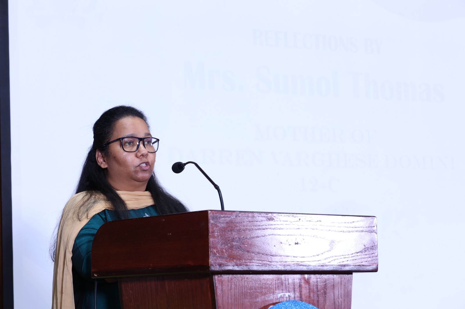 Reflecting on their journey with the school, Ms. Salma Iliyas Khan, mother of Zara Imtiyaz Mahadiwala of grade 12A, Dr. Aparna Bhat, mother of Ashutosh Bhat of grade 12B, Ms. Sumol Thomas, mother of Darren Varghese Domini of grade 12C, Mr. Jayasankar N. S, father of Niranjana Sankar of grade 12D, Mr. Umesh Chandra Panda, father of Abhipsa Panda of grade12E, and Mr. Hariharan Kalyan, father of Anju Hariharan of grade 12F, expressed their appreciation for the efforts of the management and teachers in shaping their children into respectable and confident individuals. They acknowledged the school's provision of holistic education and a nurturing, secure environment. Representing the student community, the prefects of grade 12, Zara Imtiyaz Mahadiwala of 12 A, Joel Bittu of 12 B, Urvi Kalal of 12 C, Ann Mathew of 12 D, Shambhavi Dhargalkar of 12 E, and Livia Maria Saji of 12 F, expressed their gratitude as they shared their fond memories of school life.