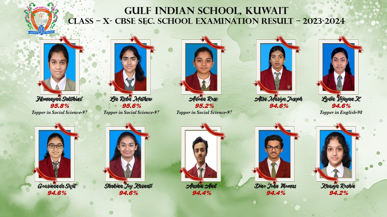 The Central Board of Secondary Education published the results of Class X on 13 May 2024 and the students of Gulf Indian School obtained phenomenal results with 100 % success and pulled off exceptional performance once again.