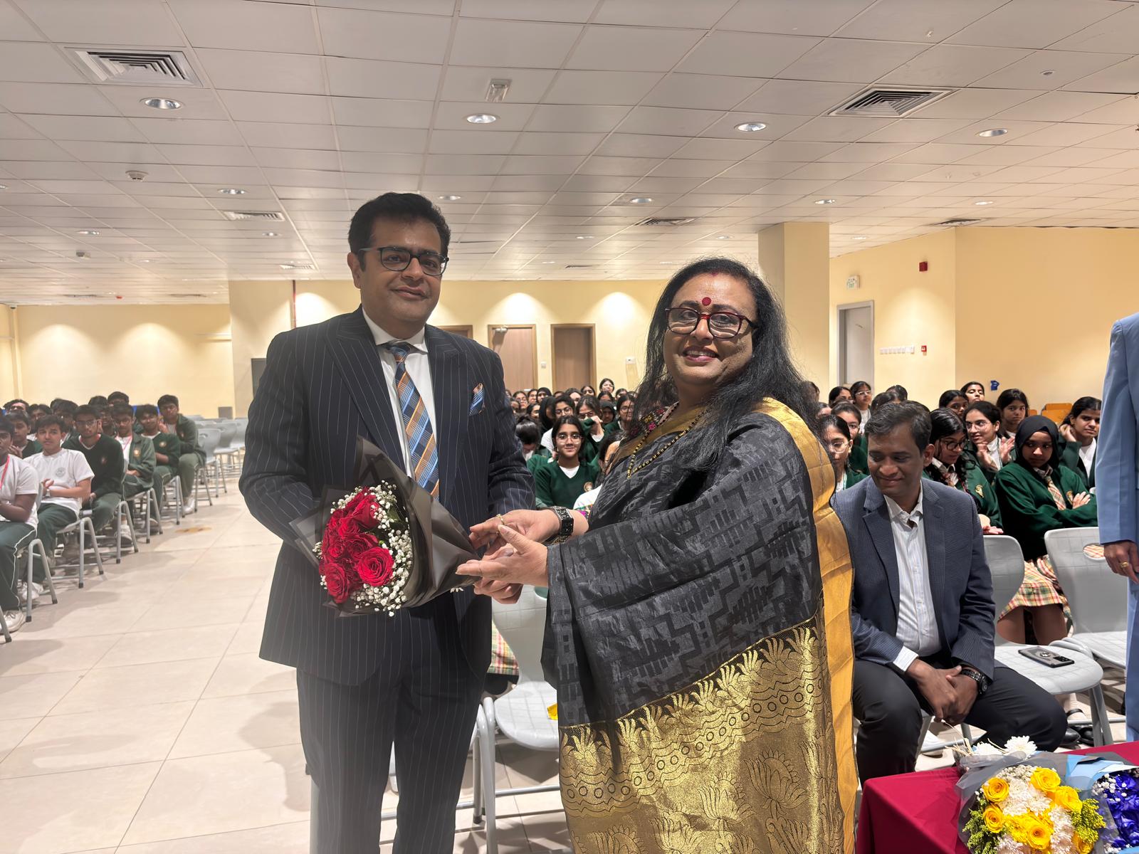 The event was further distinguished by the presence of Mrs. Pillai and Mr. Arun Choudhary, CFO & Head-Strategy, Al Rayan Holding Co., whose participation added to the grandeur of the occasion. Their presence reinforced the importance of leadership and intellectual growth in today’s ever-evolving world.