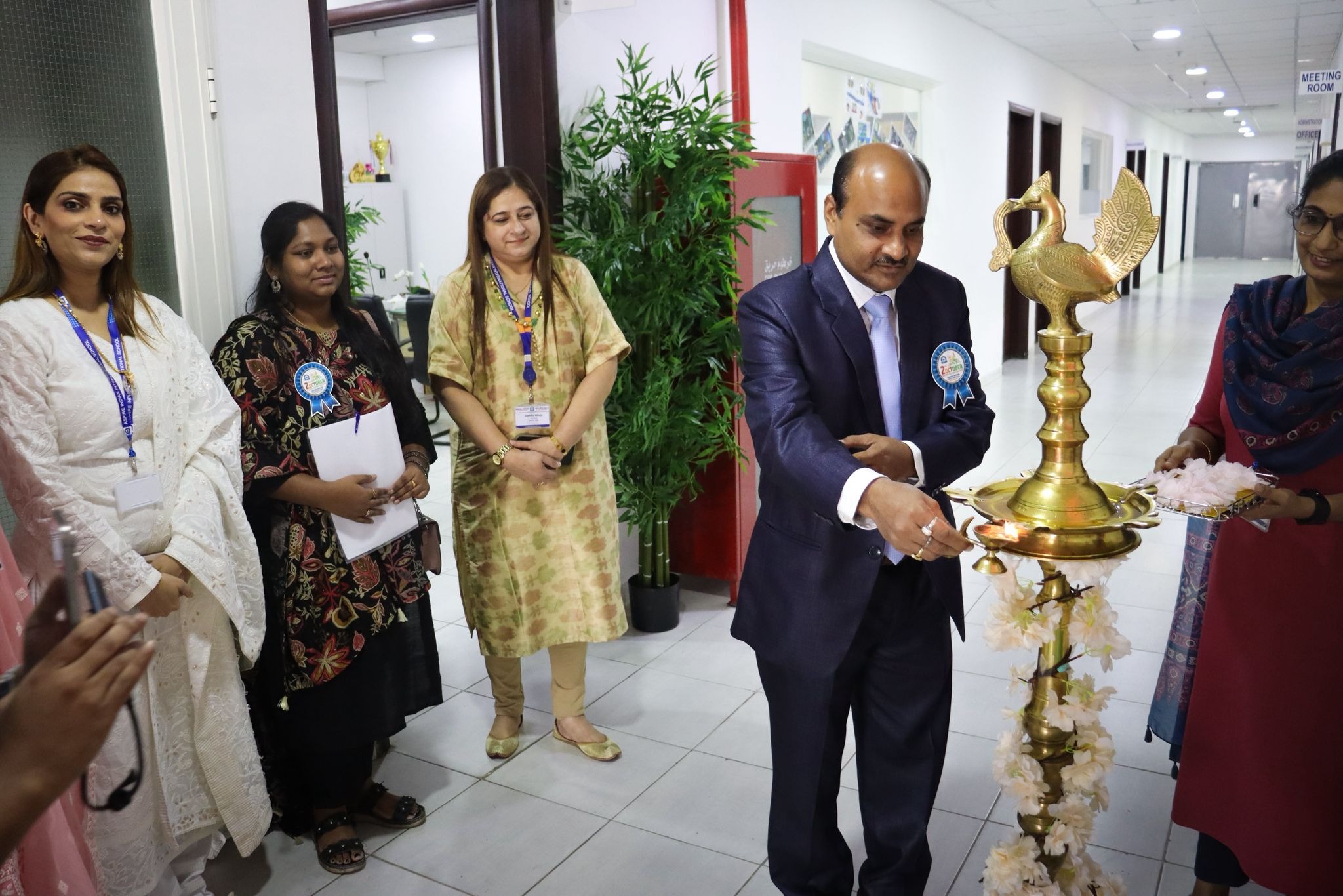 On the occasion of Gandhi Jayanthi, Embassy of India is having month long celebrations which has already begun. The Indian embassy officials gifted a significant collection of educational books to Aspire Indian International School. The gift which encompasses a diverse range of subjects and genres, aims to enhance the academic resources available to students and foster their intellectual development. Shri Baijanath Prasad, Second Secretary (Education, Culture, & Library) was welcomed warmly with a lamp lighting ceremony and visited the library, all the labs and classrooms. The presentation ceremony was attended by the Principal, Vice Principal, teachers, students and embassy representatives, highlighting the ongoing commitment to fostering educational collaboration and cultural exchange.