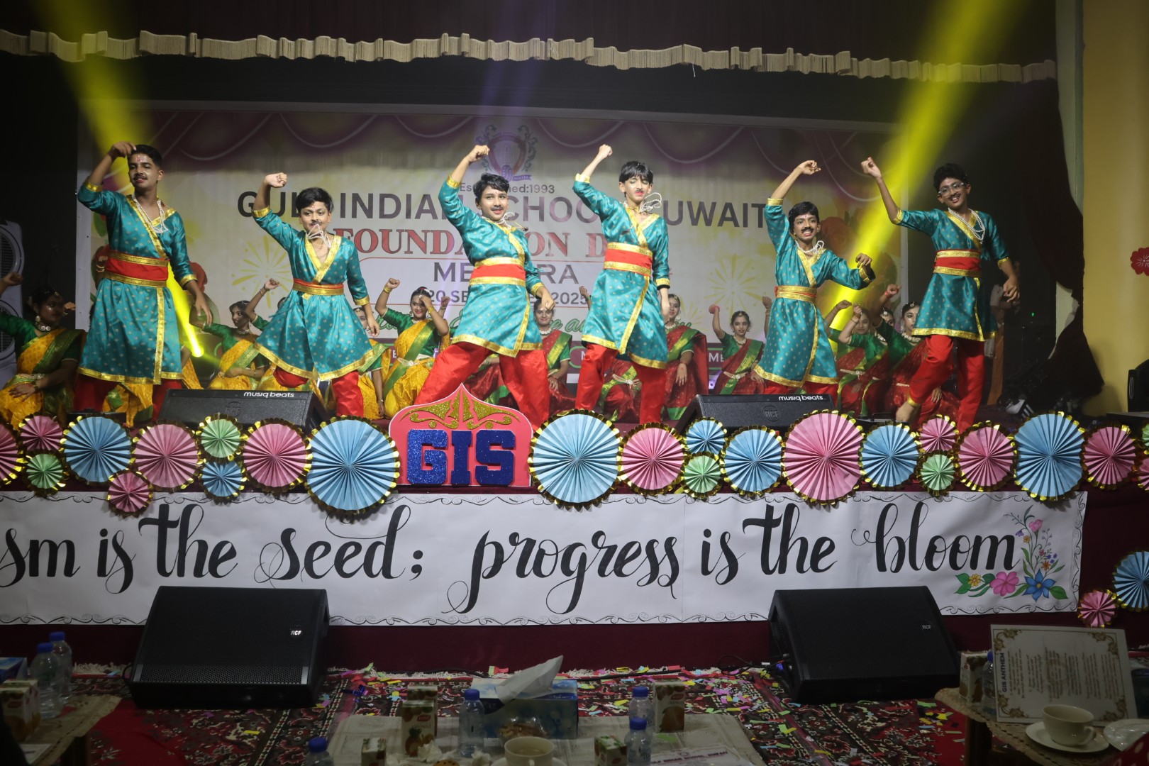The occasion was graced by Chief Guest Mr. Ghazi Faisal Al Dabbous, Chairman of Al Faisal Educational Establishment, accompanied by Manager Mr. Sreekumar Pillai and respected principals from affiliated institutions: Dr. Saleem Kundungal (India International School), Mr. Radhakrishnan C (United Indian School), Mrs. Sajitha Menon (Salmiya Indian Model School), and Mr. Anoop Kumar Sharma (New Gulf Indian School). The ceremony commenced with a melodious Quran recitation, followed by the Kuwait and School Anthems, uniting attendees in patriotic harmony. Head Girl Nanda Prasad delivered a refined welcome address, expressing gratitude for the community’s unwavering support. The stage flourished with a vibrant welcome performance and the dynamic Josh-e-Bhangra dance, earning enthusiastic applause.