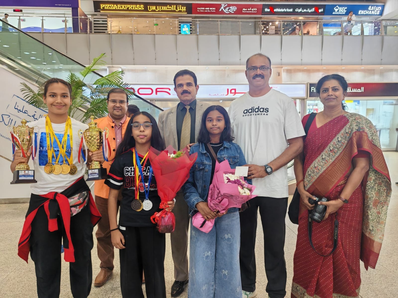 The victorious contingent, team and medalists alike, returned home to a hero's welcome. They were formally received at the airport by a proud delegation, including Mr. Ravi Ayanoli, the Principal of FAIPS(DPS) and Chairman of the Gulf Sahodaya of CBSE Schools, and Mr. Prashant Vasudev, the Convenor of the Kuwait Chapter of CBSE Schools. Accompanying them were the FAIPS Physical Education HoD, Ms. R. Subbulatha, and the beaming parents.