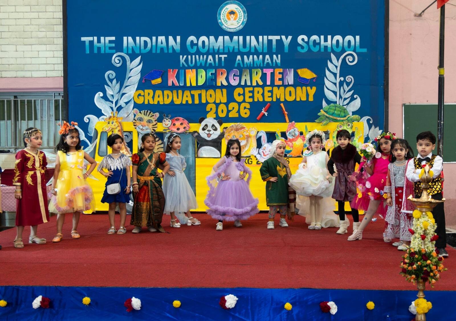 The Indian Community School Kuwait, Amman, celebrated its Kindergarten Graduation Day on Thursday, 12th February 2026, with great pomp and festivity. The school was abuzz with excitement as children, dressed in adorable ladybug costumes, welcomed proud parents and families of the young graduates. The function began with a dazzling performance by the ladybugs who enthusiastically welcomed the gathering.