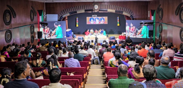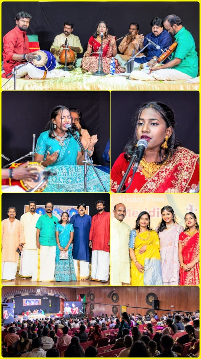 Ms. Preetha Shivani Raja has been learning Carnatic Sangeet formally for the past 10 years from Mr. Rajesh Thiruvalla in Kuwait and Mr. Velmurugan from Pondicherry, India. As a result of her 10 years of musical training, this day she reached her first milestone of performing.Tamil Nadu Music and Fine Arts. Vice-Chancellor of the University. Dr. S. Sowmya who flew from India exclusively for this program was the special guest for the debut performance of Preetha. Along with her, owners of Hotel Saravanaa bhavan- Kuwait, Mr. Natarajan and Mrs. Anandi Natarajan, and Mrs. Eya Benz from the Embassy of France and Mrs. Anbal Al Awadhi from Kuwait University were also present as special guests.