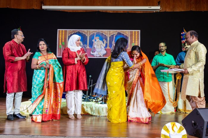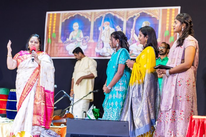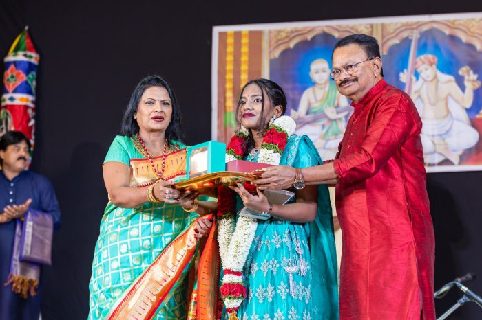 The kriti sung by preetha with swaram caught the attention of the concert-goers and received a standing ovation.She continued to sing famous tamil, telugu, kannada and malayalam kritis written by various legends of carnatic music and in a variety of ragas, which was very well received by the audience.Tamil Nadu University of Music and Fine Arts Vice-Chancellor Mrs. Dr. Sowmiya in her felicitation speech said, "Preetha sang without fear on the stage with her fellow artistes without missing a beat."He appreciated Preetha's talent and praised Preetha's voice which is very suitable for Carnatic music.