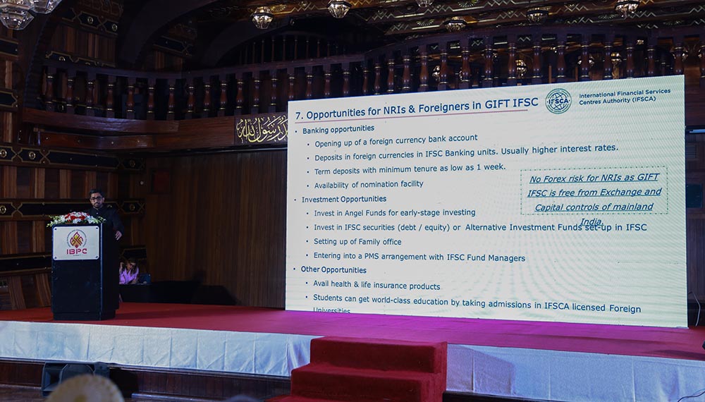 Mr. Pavan Shah, General Manager of IFSCA, delivered an insightful presentation on various seamless procedures, starting with simple bank deposits at Gift City. He shed light on the competitive returns offered by all banks operating within Gift City and elaborated on the various Fund Management services and Portfolio Management Services (PMS) available in foreign currencies.