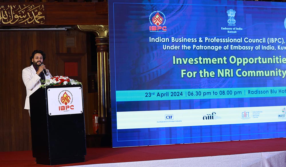 The Indian Business and Professional Council (IBPC), Under the Patronage of the Embassy of India, Kuwait, successfully hosted a seminar at Radisson Blu Hotel, focused on "Investment Opportunities for the NRIs," in collaboration with esteemed partners; the International Financial Services Centres Authority (IFSCA) - Gift City, Invest India, Aequitas, CII, and NIIF. The event aimed to leverage the advantages for foreign investors and NRIs, particularly emphasizing the benefits tailored for NRIs in GIFT City.