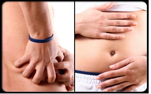 Kidney stones often cause no pain while they are in the kidneys, but they can cause sudden, severe pain as they travel from the kidneys to the bladder. Symptoms and signs include excruciating, cramping pain in the lower back and/or side, groin, or abdomen as well as blood in the urine. If infection is present in the urinary tract along with the stones, there may be fever and chills. A doctor should be called immediately.