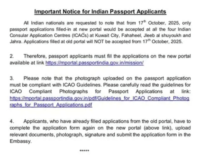 The Embassy of India in Kuwait City has issued an important notice for Indian passport applicants. The announcement, made under the direction of the Ministry of External Affairs, Government of India, was shared through official and media platforms including DD News, ANI News, Kuwait News Agency (KUNA), and Diaspora India Connect.