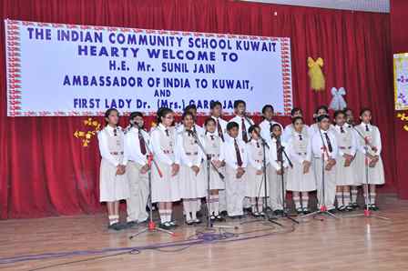 Honorary Secretary Mr. Vijay Karayil welcomed the august gathering to the occasion. He appreciated each one present there for taking time out to be present there. He also remembered the contribution of the founding fathers as the occasion coincided with the 56th Foundation Day of the school. He also declared the news about ICSK becoming the regional center for National Institute of Open Schooling (NIOS). In his Presidential address Mr. Ashok Kalra highlighted the transparent functioning of the school Board and thanked the guests for making it a truly memorable evening. He informed the audience about the recent new options of subjects added in the class XI and XII at the ICSK making it the only school in Kuwait to offer such a wide choice of subjects for the students.   In his patriarchal address, the School sponsor Easa Abdul Rahman Al Easa nostalgically recalled his association with the Indian Community School. During his speech, Mr. Abdallah Al Basri, Director of Public administration for Private Education also expressed his pleasure at being present at the occasion. Ambassador of India to Kuwait H.E. Mr. Sunil Jain, in his address, expressed his pleasure at being present for the occasion and appreciated the show put up by the children. He recounted his earlier association with Kuwait. He also hoped that he would be able to serve better the peaceful Indian Community in Kuwait.
