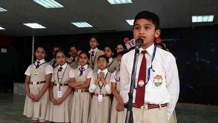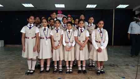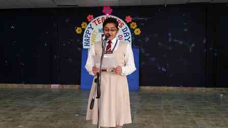 thought for the day delivered by Head Girl Ms. Julia Ann Powell. A tableau depicting the pioneers in the field of education, dance, music and sports field was portrayed with splendor and gaiety depicting the glorious culture of India. A melodious song echoing the theme of the event was rendered by the school choir. A visual delight of the special assembly was a group dance presented in unison and rhythm.