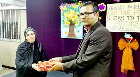 The school Principal, Mr. Rajesh Nair C. addressed the gathering with the warm welcome to the grandparents saying that grandparents are God’s gift and have a major role to play in childrens physical and mental development. Grandparents keep a family close together; they are families greatest treasure; they lay the strong foundation; also teach the traditional values through their special love and care, he said.