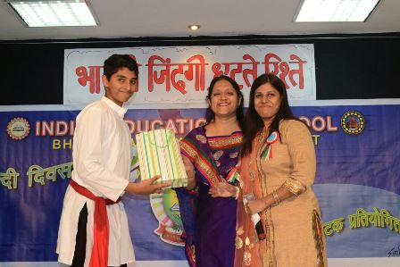 On the occassion of Hindi Diwas, Bhavan’s(IES) conducted a street play ('Nukkad Naatak' - Bhaagti Zindagi Badalte Rishtey) on 14th Sep 2014. The students of Salmiya Indian Model School finsihed 2nd in the competition. It showcased the significant theme of 'The break up of family relations due to our busy life'.