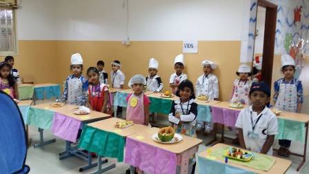 For students, the competition offers an experience that will help them further for their culinary careers. They were chosen for demonstrating the ability to build confidence and take up further challenges. The little chefs were judged on plate presentation, taste, food, safety and sanitation by scrupulous judges Mrs. Sapna Raoof (VP), Mrs.Sophy John (VP), Mrs. Firoza .The entire IIS kitchen was swarming with tiny tots in their appropriate attire as a chef it was a wonderful moment for the tiny tots and teachers to experience the mouth watering refreshing mock tails, raw vegan sandwiches immune boosting vegetable salad and fanciful fruit salad.