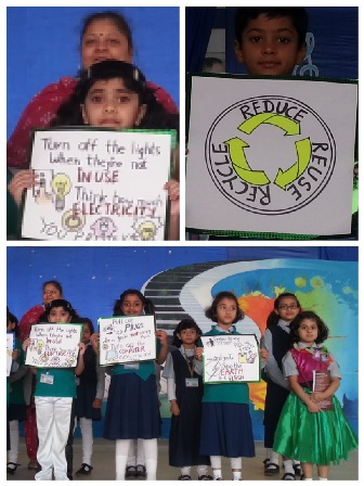 Special assemblies were conducted by all the sections starting from KG to the Senior Secondary level with the themes–‘Protect Animals’, ‘Reduce, Reuse and Recycle’, Protect the Mother Earth , and  ‘It’s Our Turn to Lead. The themes were further reinforced by songs, speeches, skits, poems etc.