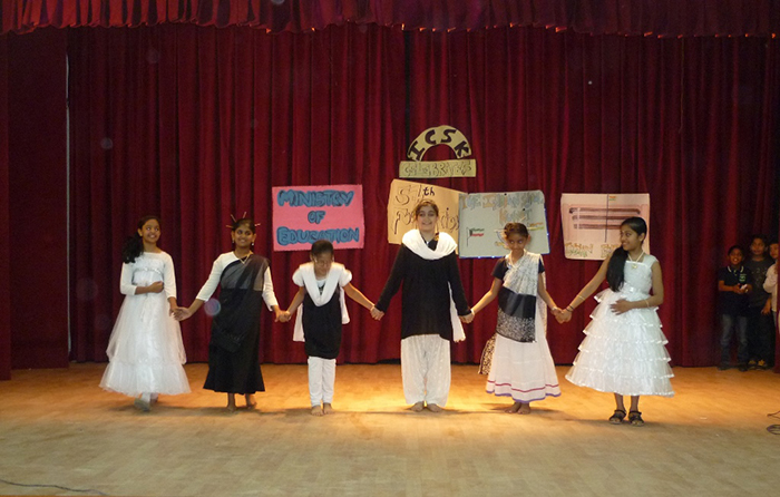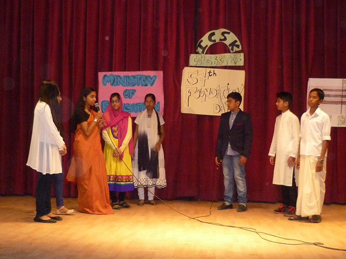 The students presented a skit dressed up as the nine founders of ICSK. Through their act they presented the founding story of ICSK and depicted the hard work and dedication behind the setting up of the school. The PowerPoint presentation enhanced the skit. This was followed by a scintillating dance recital where the children danced to the golden melodies of 1950s and a solo song to commemorate the contemporary era. The highlight was an oath administered to the students by the Principal, eliciting loyalty to the almamater. He also congratulated all the participants and wished everyone a happy 57th Foundation Day. The management of ICSK too made the celebration joyous by distributing chocolates to all and conveying their greetings on this auspicious day.