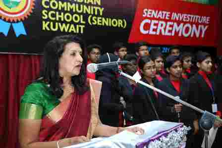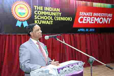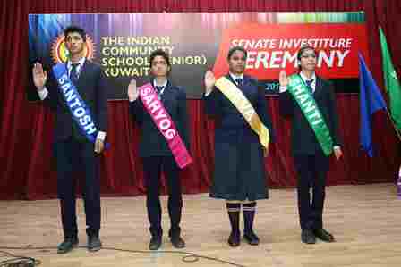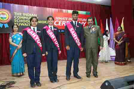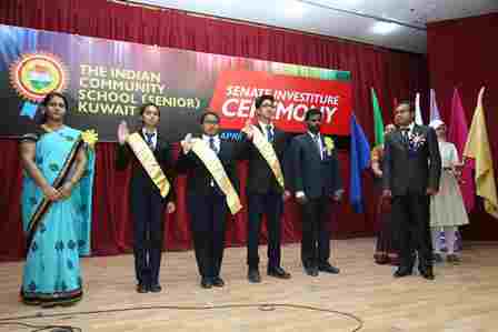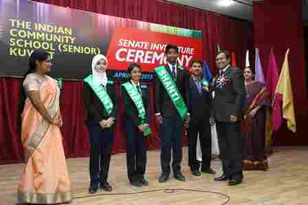 The Indian Community School Kuwait, Senior, witnessed the swearing in ceremony of the school senate members on Thursday, 30th April, 2015. The democratically elected senate members pledged their allegiance to the school in the midst eminent dignitaries. The Ambassador of Bangladesh to Kuwait, His Excellency Major General Mohammad Ashab Uddin, was the chief guest of the function, the members of the board of trustees, the Principal, the Vice Principal, teachers and staff were present at the ceremonious function.