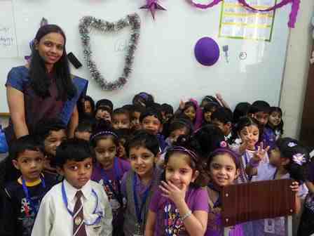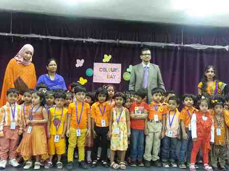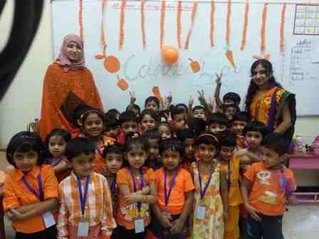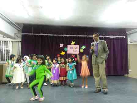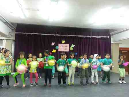 It was a dazzling day at the Indian Community School Kuwait, Amman, on 7th May, 2015, as the pre-primary students celebrated Colours Day. Different colours like red, blue, green, yellow, orange, purple and pink were given to each class. The classrooms were decorated with the specific colours and students came dressed up in that colour. A special assembly was conducted by class UKG-A on the theme – “Cleanliness and Colours Day”. It was a wonderful moment for the studentsas the purpose of this day was to make the children aware of different colours. Students spoke a few sentences about cleanliness and the importance of colours followed by a colourful Hat Dance performed by the students and a solo song sung by Miss Slania of UKG - A