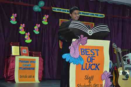 School’s Vice-President Tania Thankam welcomed the outgoing students. In a nostalgic speech, the School President Adithya Narayan reminisced about his school life through the various ups and downs and successes. He stressed on the importance of school life in shaping one’s destiny. Further, he thanked all the teachers for their endearing efforts in shaping up the destiny of every child and for being there when it mattered.