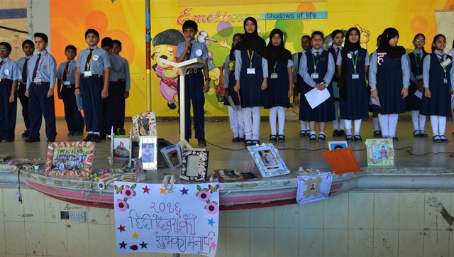 Recitation was held across grades III, IV and V as competition. Activities such as names of birds for grade III, names of colours of a rainbow for grade IV and shells and pebbles found from sea shore to be made into photo frames and jewellery for grade V were conducted as part of the celebration. All activities were conducted with Hindi as the medium of instruction, discussion and interaction.