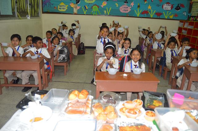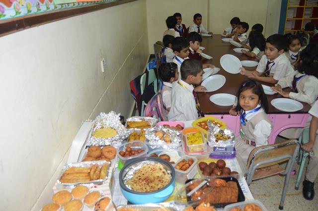 Children were requested to bring different types of home-made food items. This was to make our children aware that home-made food is not only tasty but also healthy. Children bought different types of Indian food items: Aloo Paratha, Veg Sandwich, Veg Spring Roll, Cheese Samosa, Sweet dishes included, Carrot Halwa, and Cakes etc.