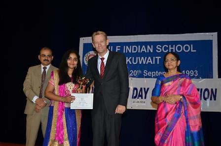 The proceedings of the day commenced on a spiritual note with the recitation of the Holy Quran. The privilege to address the august gathering was vested on the Head Girl, Julia Pius. The Principal, Mrs. Shyamala Divakaran addressed the audience and introduced the Chief Guest. The slide show GIST 2015-2016 gave a quick recap of the achievements and activities of the year. The occasion was graced by the presence of the Honorable Chairman and owner of the school, Mr. Ghazi Faizal Al Dabbous. The presence of Principals and Vice Principals of various other schools, parents and well-wishers further illuminated the occasion.