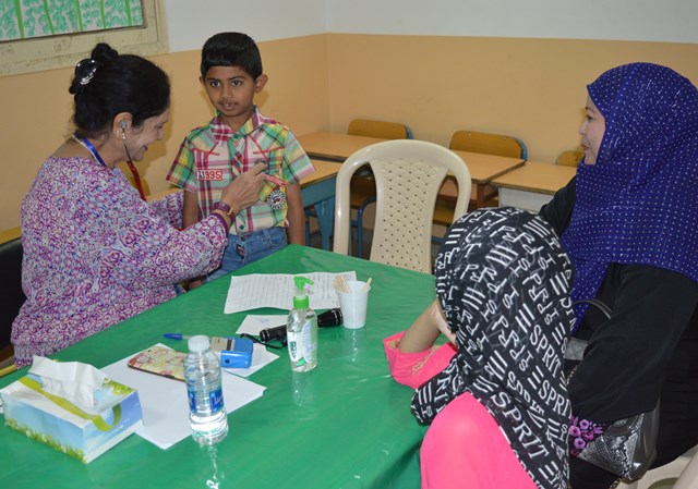Students and staff could avail consultations with the team of doctors from the department of pediatrics, ENT, ophthalmology, dermatology, gynaecology and general medicine. Shifa Al Jazeera clinic lent their support in eye screening. Members of medical emergency services offered aid with preliminary checkup such as height, weight, temperature, blood sugar and pressure.