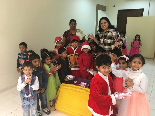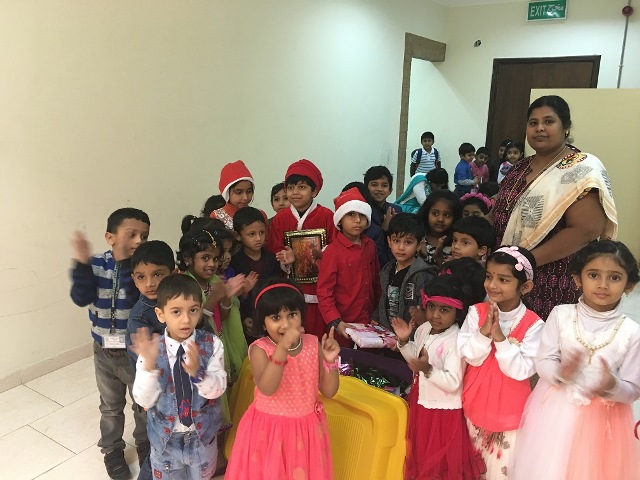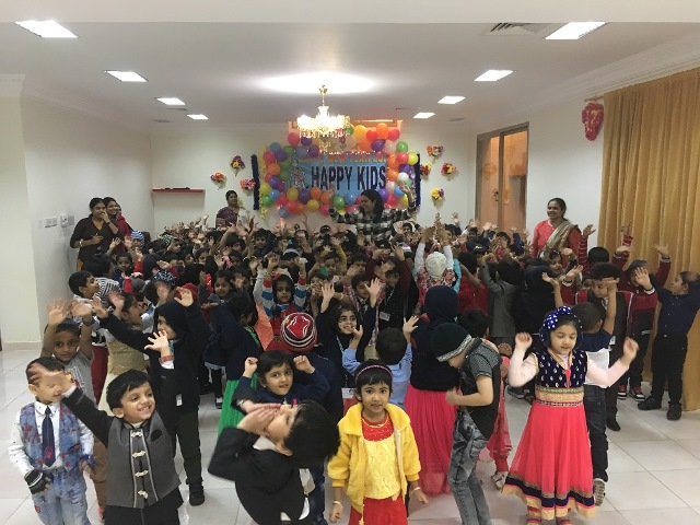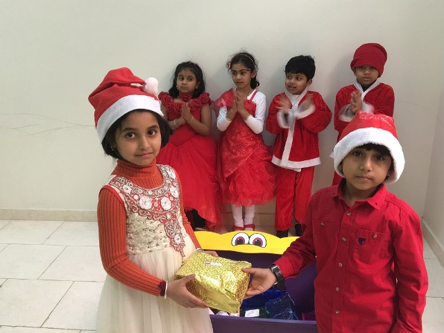 Happy Kids School, Mangaf, celebrated Christmas and showered their willing welcome to the new year 2017 with the theme of "Loving, Caring and Sharing". The day started with special prayer, special message and filled with events like Dance, Music, Colouring of greeting cards, Secret santa (Gift Exchange) and Food fair.