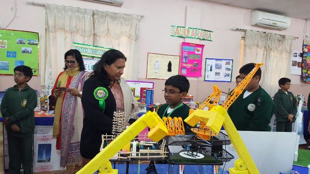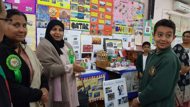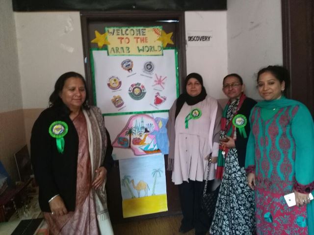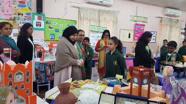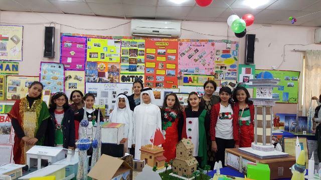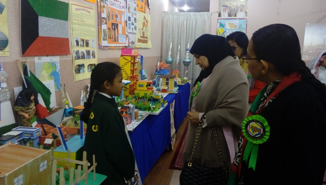 An amalgamation of rich cultures of fast upcoming Middle East Nations of Saudi Arabia, Qatar Bahrain, UAE and Oman were beautifully exhibited in the Primary Wing of FAIPS DPS Ahmadi. It was inaugurated by KSS Inspector Mrs. Siham Alowaid accompanied by Principal Ms. Anju Dheman and by Headmistress Mrs. Seema Bhatnagar. Enterprising students of grades III, IV and V used the given space effectively depicting the transition of above mentioned countries into modern inviting nations.