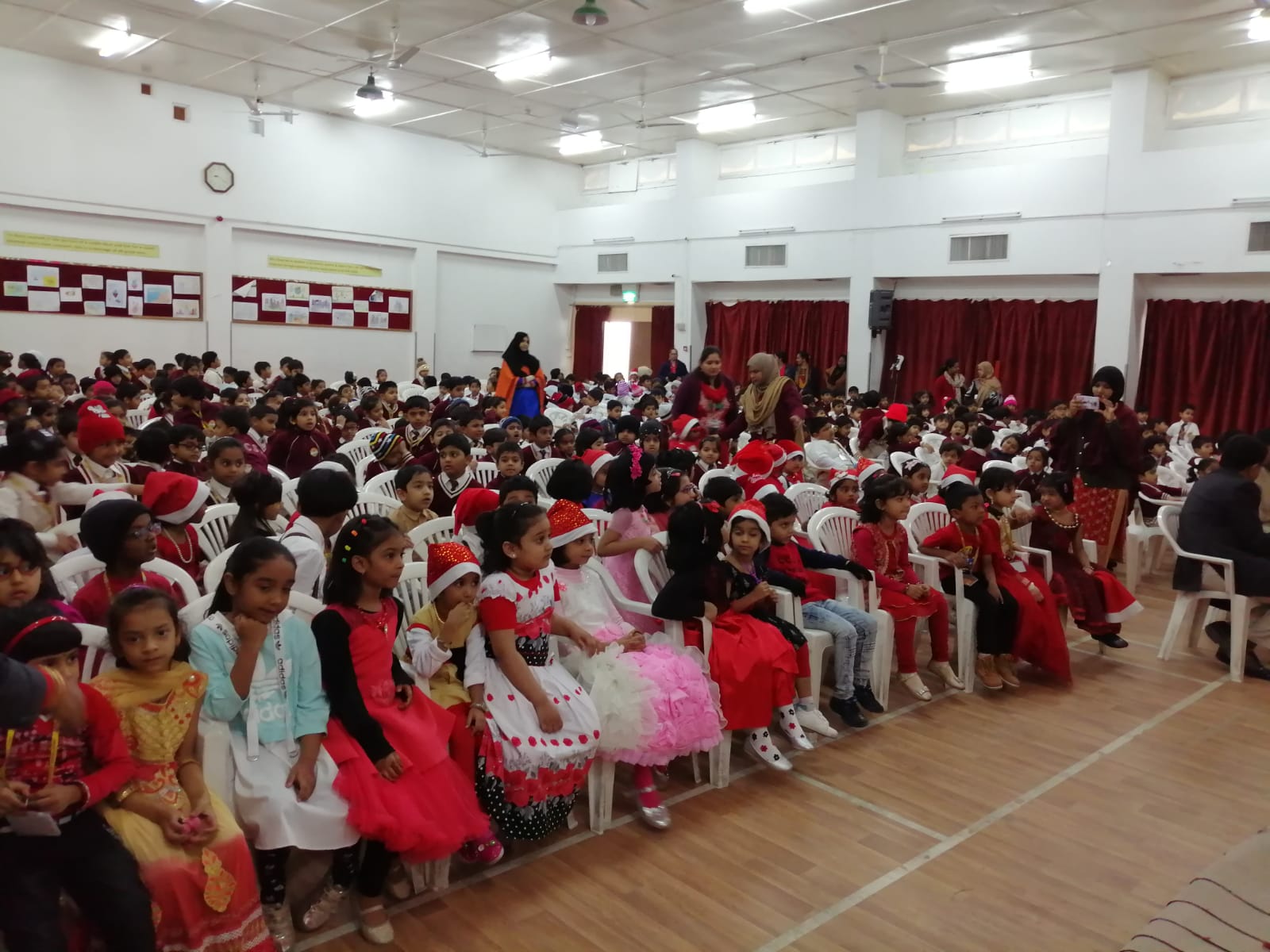 The Stage was decorated with a festive look with posters and drawings made by the students. Programs started with a minute of silence followed by recitation of Holy Quran and thought for the day. There was a small cultural program where students dressed in red and white Christmas attires performed dance on the stage, sang Christmas Carols and New Year songs which were completely hypnotic and enchanting. The children were told about the birth of Lord Jesus and the legend of Santa Claus.