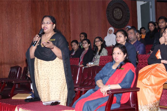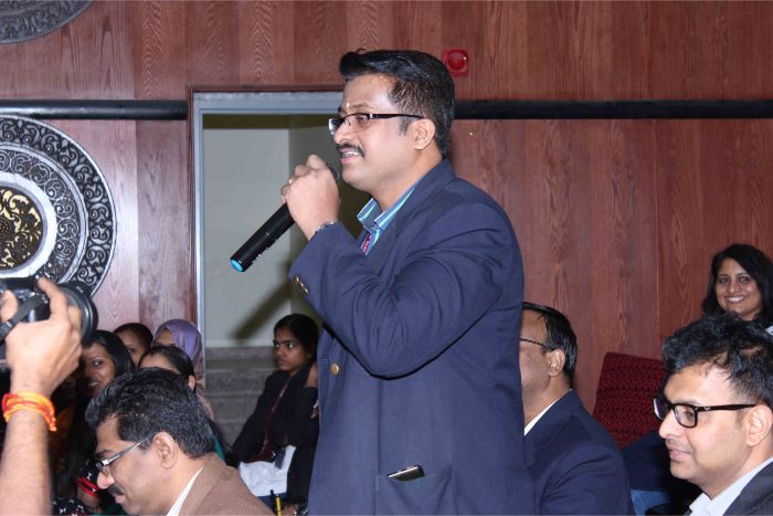 The staff were energetic in getting their individual preferences stated and queries cleared in this session. The concomitant and versatile spontaneity in raising queries had really made the speaker to appreciate the far-reaching vision of each staff in Bhavans. The session also paved way to raise pedagogical supportive system of assessing teachers, exploring the unexplored arenas like doctorate courses and many more in line. The courses that University offers are eminently designed and achieves scalable measure on the grounds of academics and career. The speaker concluded by ensuring a placement panel which would definitely make the enrollers to turn as entrepreneurs in their respective field. SIS’ hospitality was extended to the speaker with a memento. The session came to its end with the vote of thanks by an English faculty Mr.Jonas followed by the memory to set behind the frame.