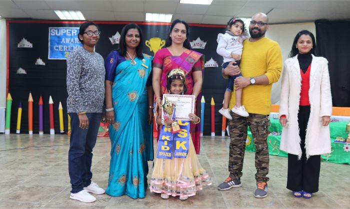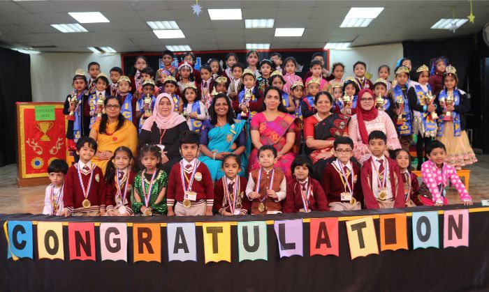 The Super Kid Award ceremony was held on Thursday, 9th January 2020 in the school premises. The Chief Guest for the function, Dr. Pratibha, Gynecologist at Etihad Medical Centre presided over the award ceremony. The winners at 1st position from each section were adorned with crown, sash, trophy and certificate. The winners at 2nd and 3rd position in each class were awarded medals and certificates.