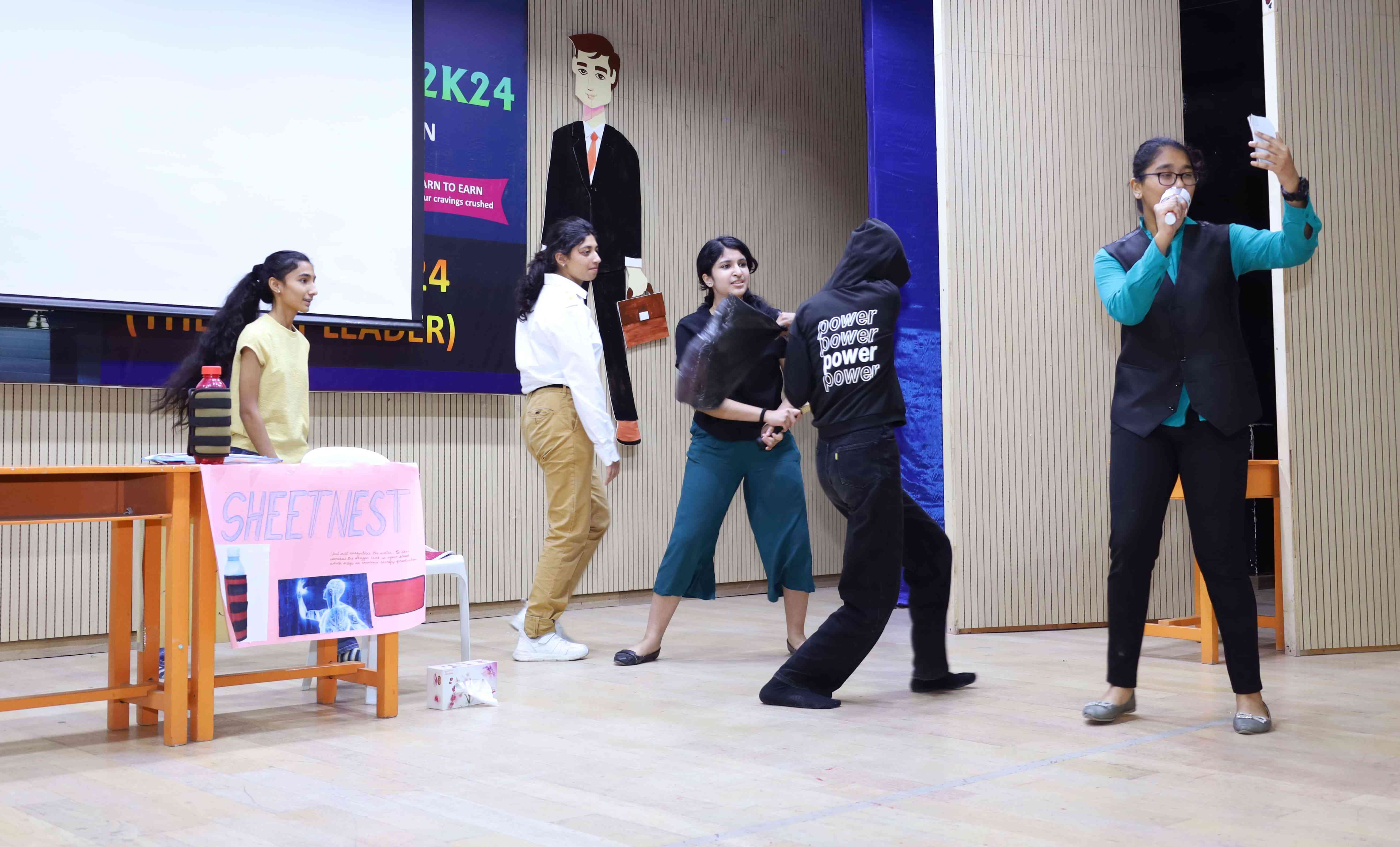 Class 12 students managed food stalls, where they invested personal funds, calculated risks, and earned profits, gaining practical entrepreneurial insights. The day concluded with a thought-provoking session led by Mr. Krishna Hari, Director of Sales and HR at Atco Technologies, where students gained valuable professional wisdom.