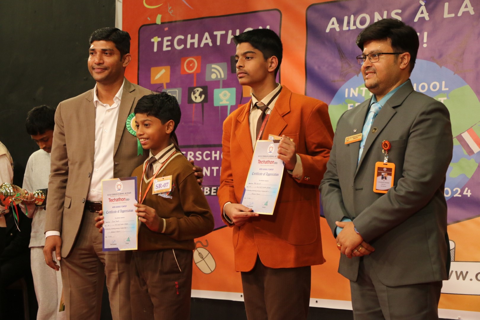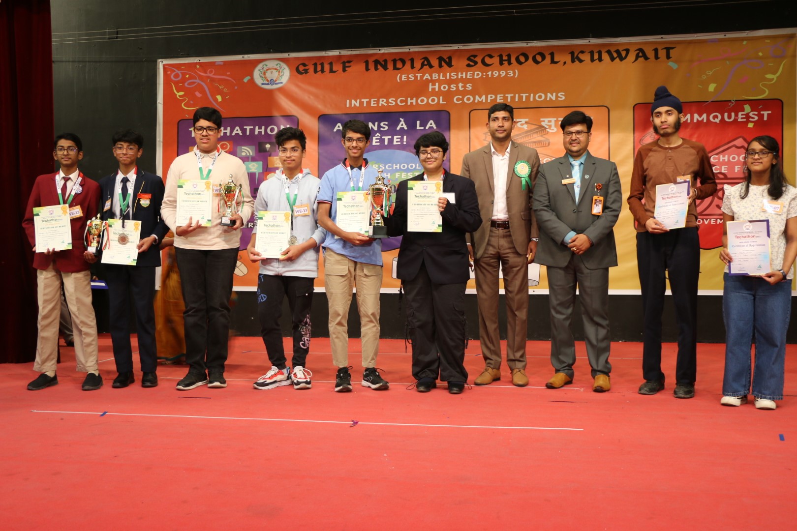 Gulf Indian School organized an inter-school IT Competition titled TECHATHON’24 on 11 November 2024. The event commenced at 8.30 AM and concluded at 1 PM. Students from17 schools all over Kuwait participated enthusiastically. The guests of the day were Mrs. Swathi Garg, Mrs. Teresa Levin, Mrs. Liny Joy, Mr. Nithin Girishan and Mr. Sam Abraham Thomas who also served as judges of various competitions titled – Colour clash, Slide Maestro, Scratch Mavens, Web Weavers Duel and AI Horizon.