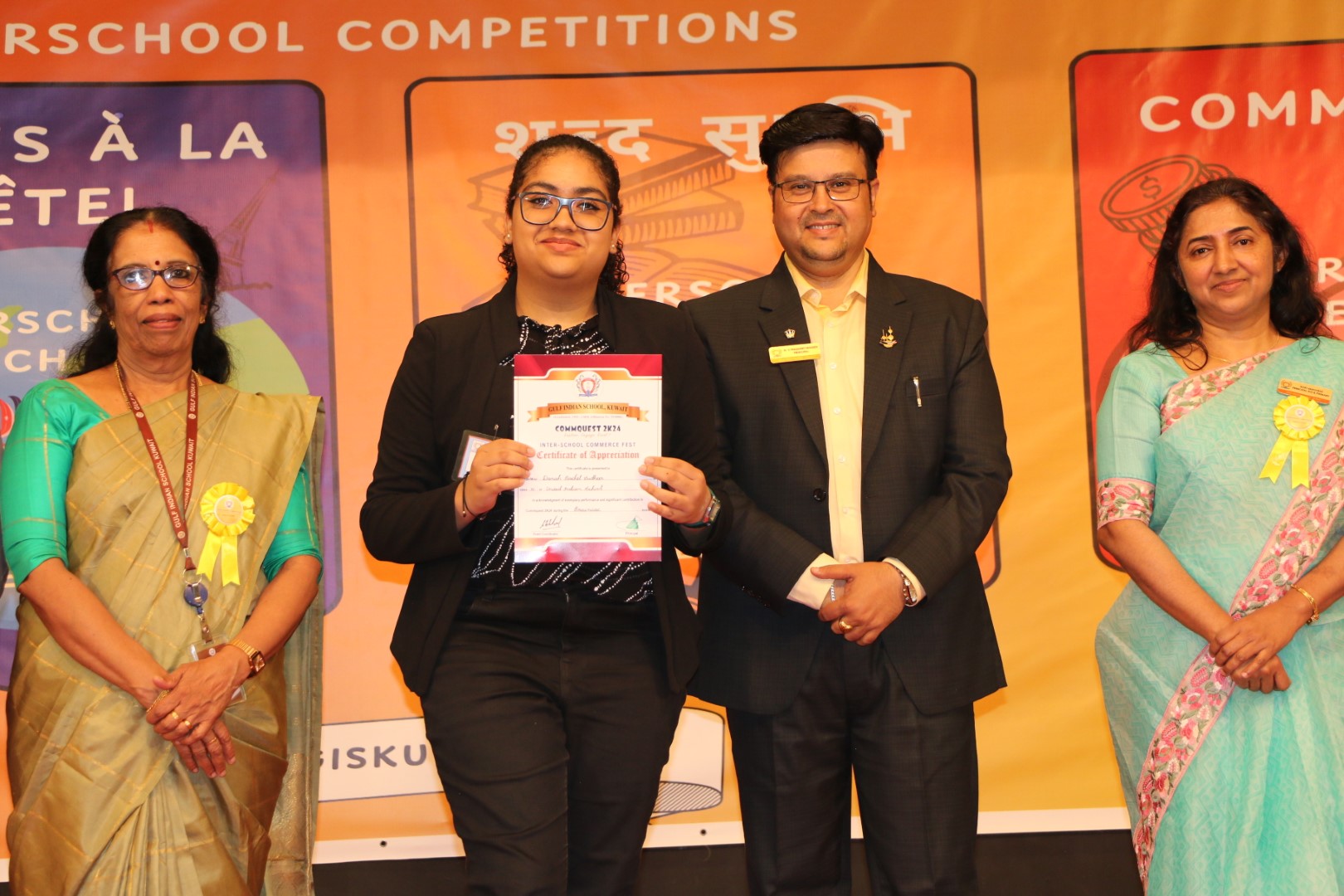 The fest concluded with a grand prize distribution ceremony, where overall winners were awarded trophies and certificates, marking the culmination of an enriching and memorable experience followed by a vote of thanks. The success of the Inter School CommQuest' 24 was a testament to the meticulous planning and organisation by the event coordinator and HOD of Commerce, Mr. Abilash and the Commerce department teachers. The event provided a valuable platform for students to showcase their talents, learn from each other, and develop essential skills in commerce and management.