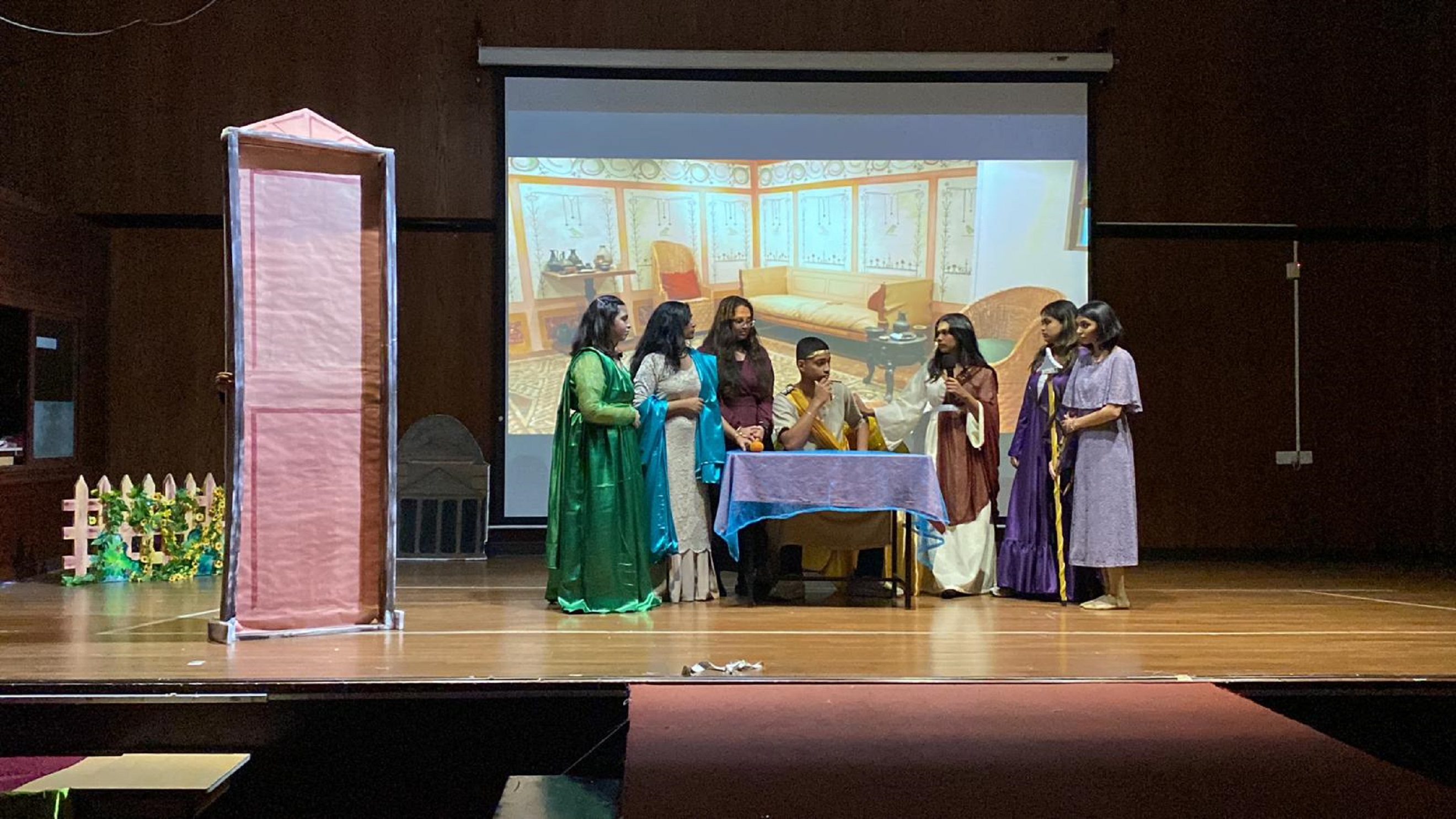 The credit for this remarkable achievement goes to several dedicated individuals. Joanna, the director, meticulously crafted the script and assigned roles that brought out the best in each student. Priyati played a pivotal role in the production, tirelessly guiding the performers with the care and dedication of a teacher, ensuring their practice sessions were fruitful. Rakshana’s efforts in designing and stitching costumes for all 12 characters added a professional touch, enhancing the overall visual appeal of the play. Meanwhile, Ms. Albin Daisy, the English teacher, provided unwavering support and encouragement, inspiring the team to give their best at every step. Behind the scenes, every department contributed significantly. From the actors and narrators to the recording team, music director, stage managers, and makeup artists, each individual played their part to perfection.