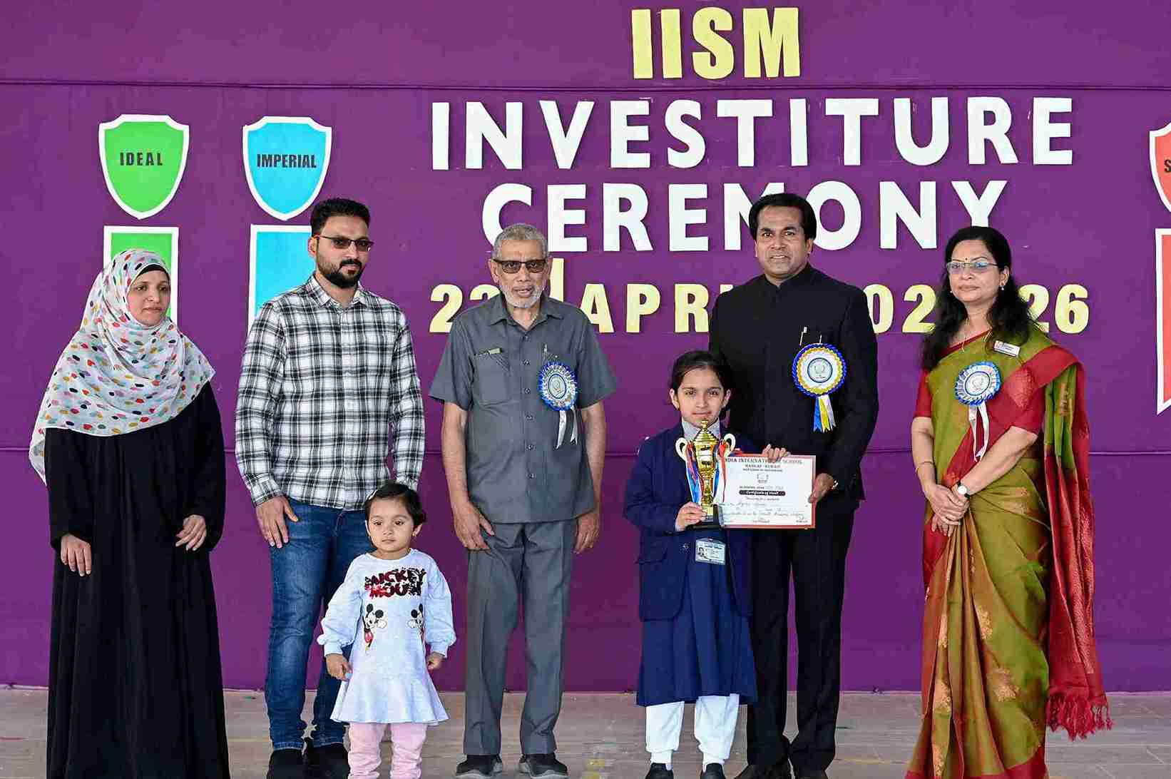 In a symbolic and proud moment, the CCA in charge, Mrs. Feroza Sultana, along with Assistant Heads Mr. Adnan Naizak and Ms. Rupa Tushya Vardhini, handed over the emblematic IISM flag to the Principal and Vice Principal. With dignity and pride, the flag was then passed to the newly elected Head Boy, Master Bassim Ummar Bin Sabir, and Head Girl, Miss Ayesha Iqbal, who pledged to uphold the school’s values and traditions with dedication.