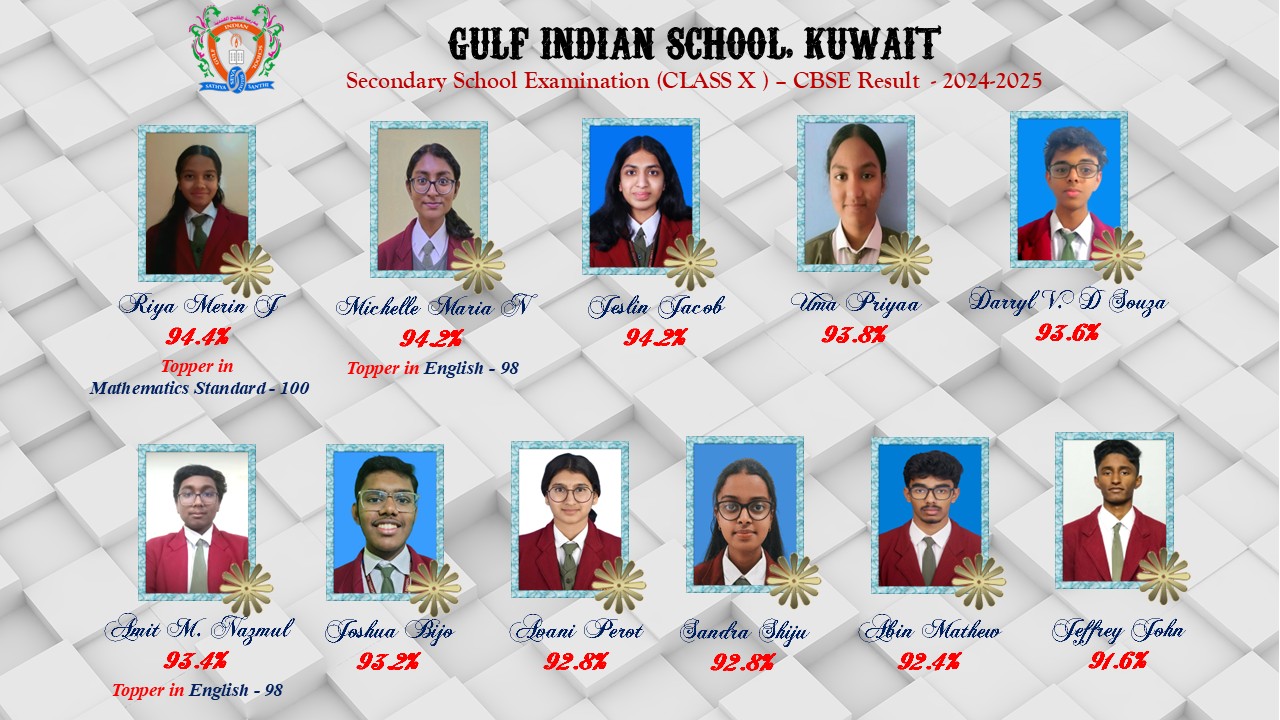 The Central Board of Secondary Education (CBSE) declared the Class X results on the 13th of May, 2025, and Gulf Indian School is elated to announce yet another year of stellar academic distinction. The institution has once again etched its name in the annals of scholastic excellence with a cent per cent pass rate, a testament to the unwavering commitment and intellectual rigour of its students.