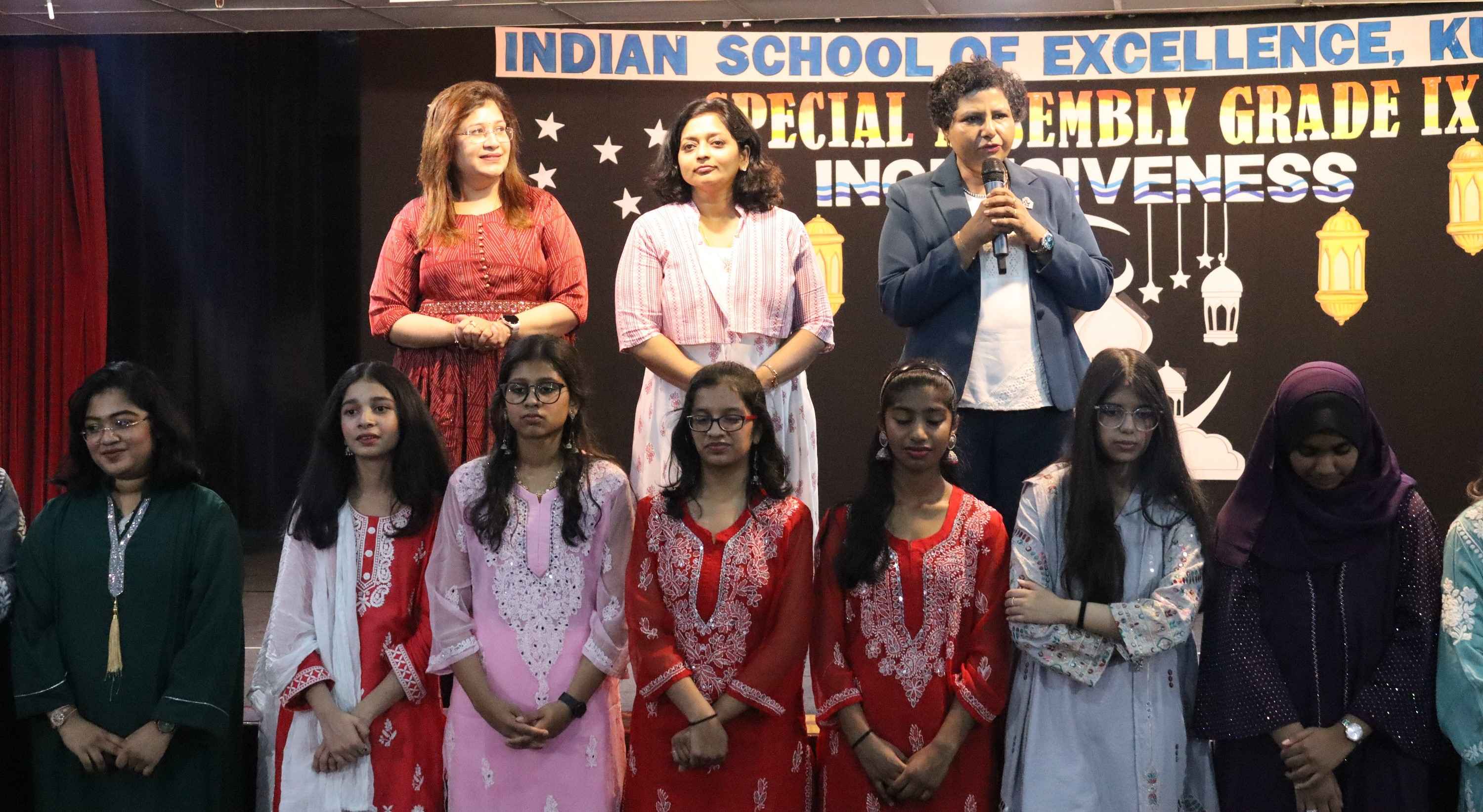 A special assembly on the theme "Inclusiveness" was held at the Indian School of Excellence on May 7, 2025, in celebration of Eid. The assembly showcased the spirit of unity and diversity through various programs.