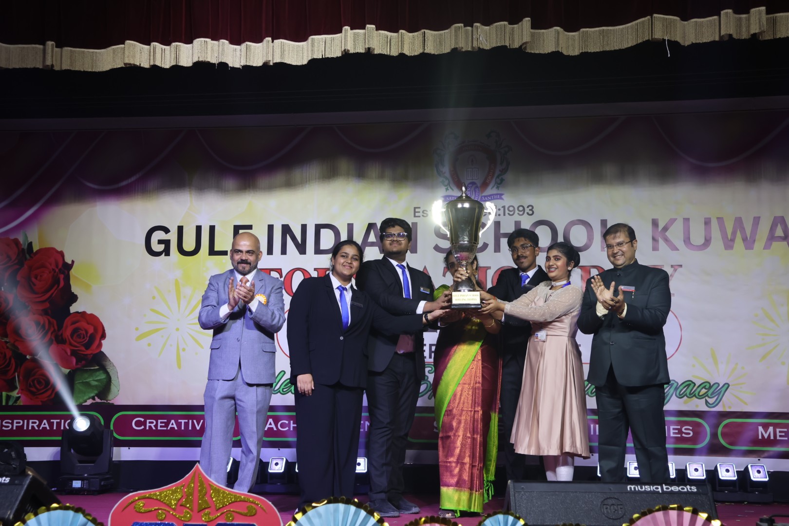 The occasion was graced by Chief Guest Mr. Ghazi Faisal Al Dabbous, Chairman of Al Faisal Educational Establishment, accompanied by Manager Mr. Sreekumar Pillai and respected principals from affiliated institutions: Dr. Saleem Kundungal (India International School), Mr. Radhakrishnan C (United Indian School), Mrs. Sajitha Menon (Salmiya Indian Model School), and Mr. Anoop Kumar Sharma (New Gulf Indian School). The ceremony commenced with a melodious Quran recitation, followed by the Kuwait and School Anthems, uniting attendees in patriotic harmony. Head Girl Nanda Prasad delivered a refined welcome address, expressing gratitude for the community’s unwavering support. The stage flourished with a vibrant welcome performance and the dynamic Josh-e-Bhangra dance, earning enthusiastic applause.