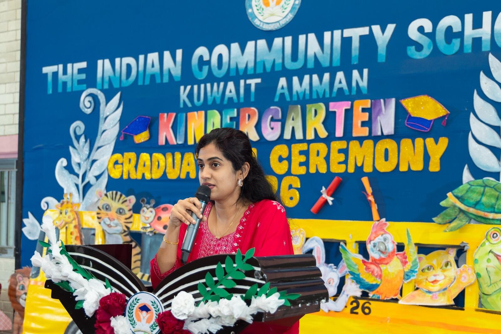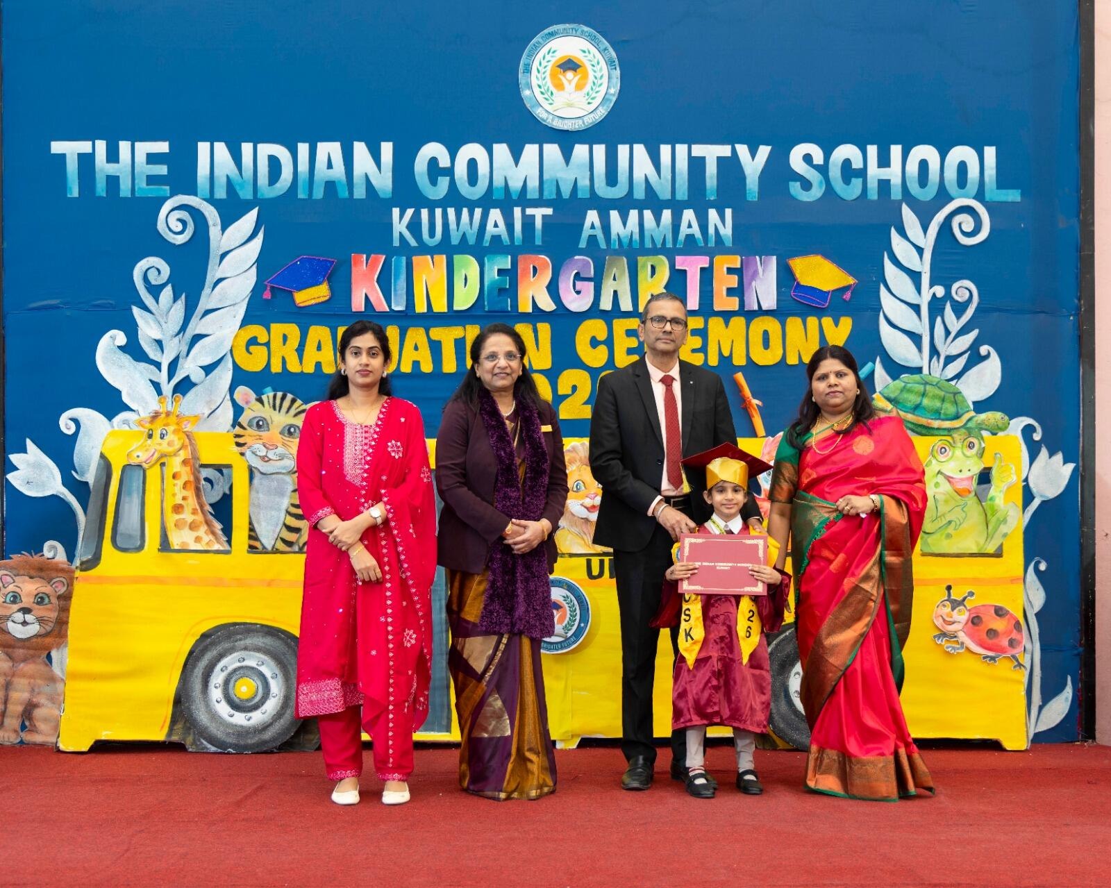 The Indian Community School Kuwait, Amman, celebrated its Kindergarten Graduation Day on Thursday, 12th February 2026, with great pomp and festivity. The school was abuzz with excitement as children, dressed in adorable ladybug costumes, welcomed proud parents and families of the young graduates. The function began with a dazzling performance by the ladybugs who enthusiastically welcomed the gathering.
