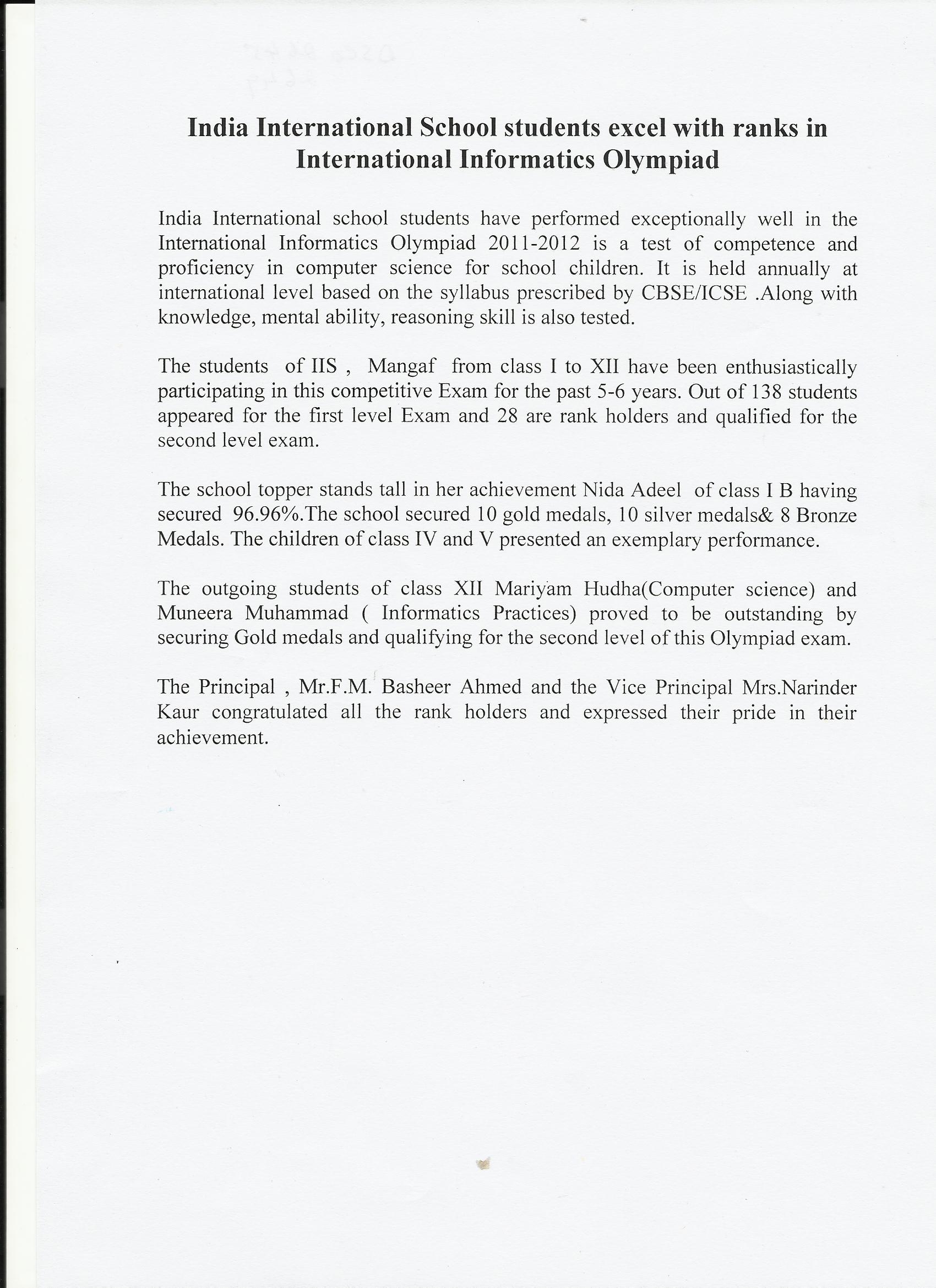 IISK excels in International Informatics Olympiad exams